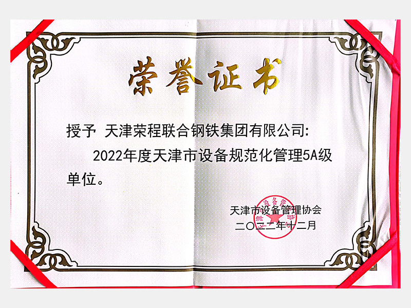 2022年度天津市設(shè)備規(guī)范化管理5A級(jí)單位
